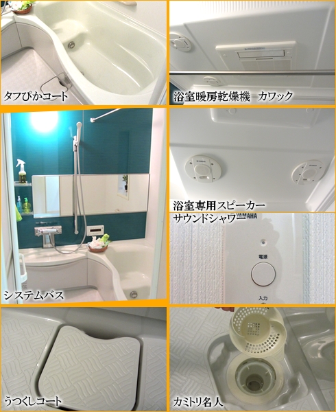 - ☆フロア表面に皮脂などの油分をはじく特殊加工を施しています。また水切れがよく、乾きの早いフロアパターンでカビの発生を抑える “うつくしフロアー”